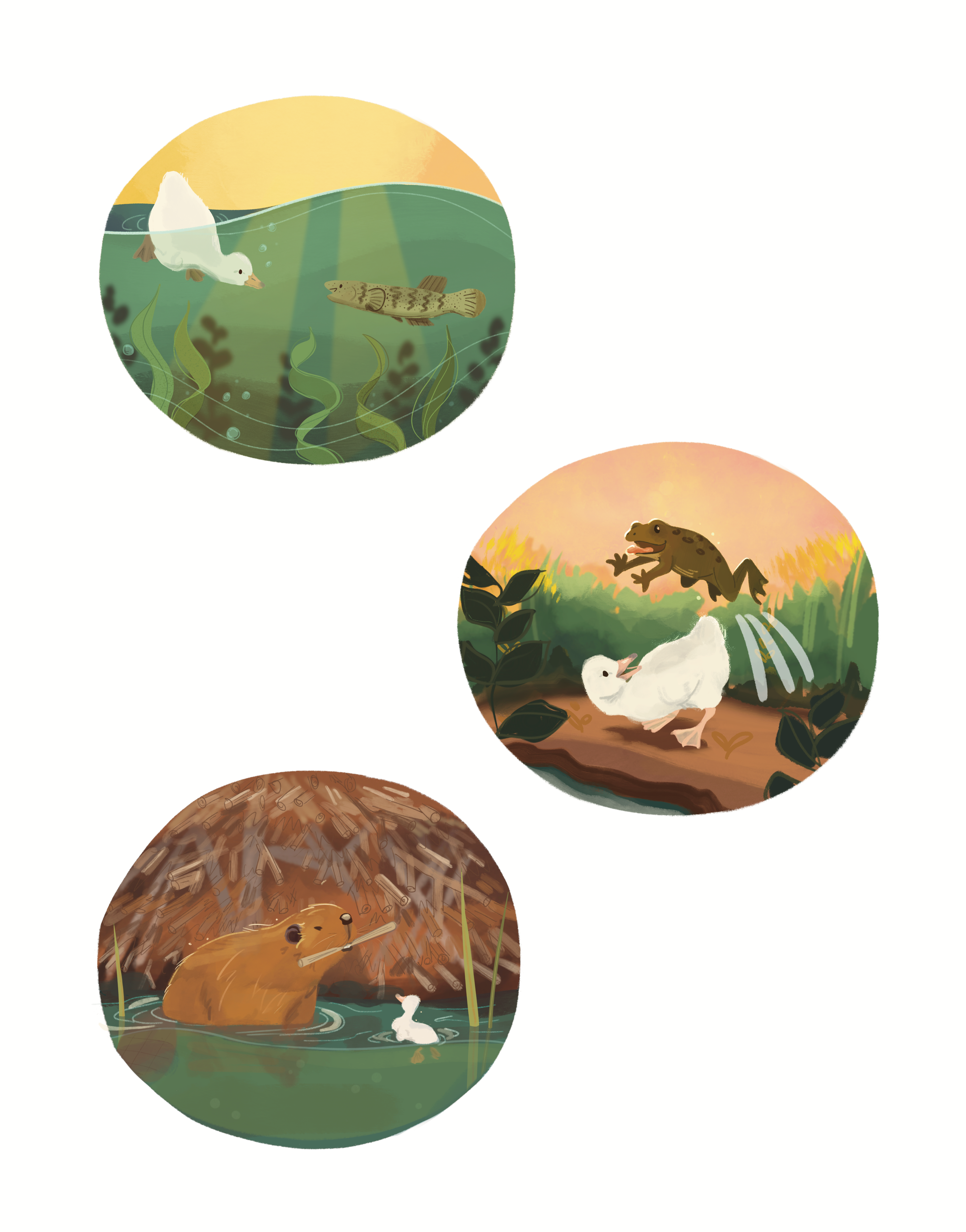These three vignettes belong to a page describing what Toke loved about his friends in the marsh, before he learns that he must eventually say goodbye to them.